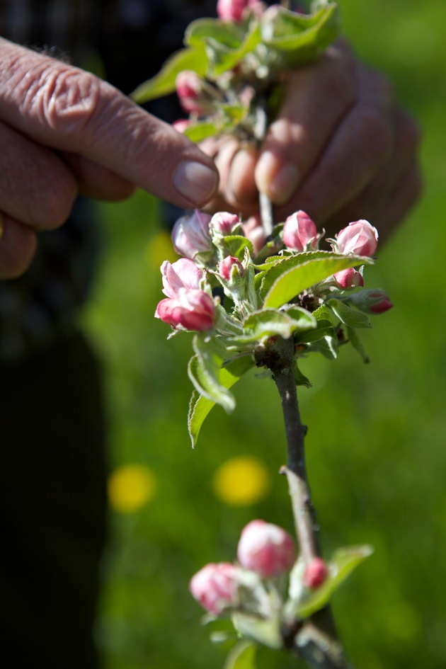 Die Äpfel für unseren Apfelsaft stammen überwiegend von Streuobstwiesen. Das sind wertvolle Biotope für mehr als 5.000 Tier- und Pflanzenarten, die sich jetzt im Frühjahr in blühende Landschaften verwandeln. Sie stammen aus einer Zeit, in der Obstbäume noch nicht streng nach Arten getrennt in Reih und Glied angepflanzt wurden. Stattdessen verteilte man die verschiedenen heimischen Arten bunt gemischt auf Wiesen und Weiden rund um die Dörfer. Heute dienen sie nicht nur als Rückzugsort für Flora und Fauna, sie sind für die Fruchtsafthersteller ein sehr wertvoller Rohstofflieferant mit einer enormen Sortenvielfalt.