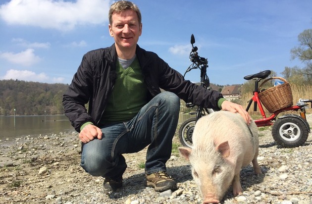 Michael Kessler bleibt reiselustig. Von Konstanz bis nach Straßburg führt seine 14. Expedition im Auftrag des rbb: "Mit Schwein am Rhein". Morgen (22.7. 2016, 20.15 Uhr) beginnt der Fernsehzweiteiler im rbb. Gemeinsam mit Eber "Eberhard" macht sich Kessler auf die Suche nach dem Glück. Die beiden legen 300 Kilometer entlang des Rheins zurück und treffen im Grenzgebiet zwischen Deutschland, Schweiz und Frankreich unterschiedliche Menschen.
