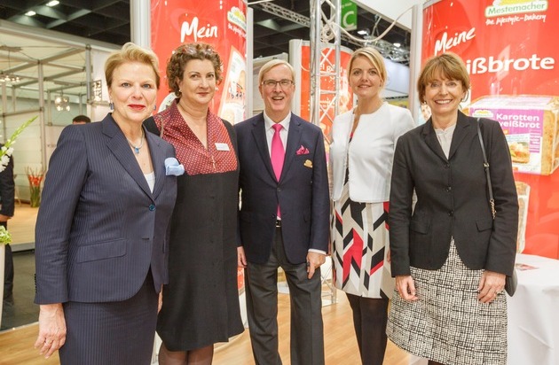 Die hohe Internationalität der Besucher und die Präsenz der Top-Einkäufer der weltweit führenden Handelsunternehmen, sind ein Zeichen dafür, dass das Produktportfolio der Mestemacher-Gruppe mit Wohlfühl-Broten bei Konsumenten ins Schwarze trifft. Während des Eröffnungsrundgangs am Samstag, den 7. Oktober 2017, besuchte NRW-Ministerin Christina Schulze Föcking den Mestemacher Messestand. Begleitet wurde die Ministerin von der Oberbürgermeisterin von Köln, Henriette Reker, und der Geschäftsführerin der Koelnmesse GmbH, Katharina C. Hamma.