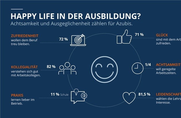 Das wichtigste Kriterium für den Ausbildungsberuf ist das Interesse am Berufsfeld (81,5 Prozent), gefolgt von regelmäßigen Arbeitszeiten, die Raum für Freizeit bieten (24,1 Prozent). Ein hohes Gehalt spielt für die meisten eine eher untergeordnete Rolle (18,6 Prozent). Die Schulen müssen besser auf den Bewerbungsprozess vorbereiten: 10,5 Prozent der Azubis fühlten sich "gar nicht" vorbereitet, weitere 31,3 Prozent geben "schlechte Vorbereitung" an.