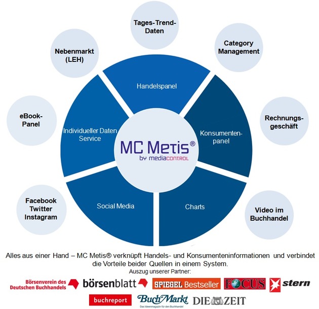 media control (Baden-Baden) erhält täglich Buch-Verkaufsdaten von über 9.000 Verkaufsstellen und verfügt damit über das aussagekräftigste Handelspanel im deutschsprachigen Raum.