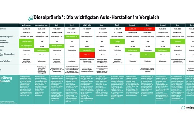 Hier geht es zur Vergleichstabelle: http://www.testberichte.de/downloads/nl/Dieselpraemie_Hersteller-Uebersicht_testberichte.pdf