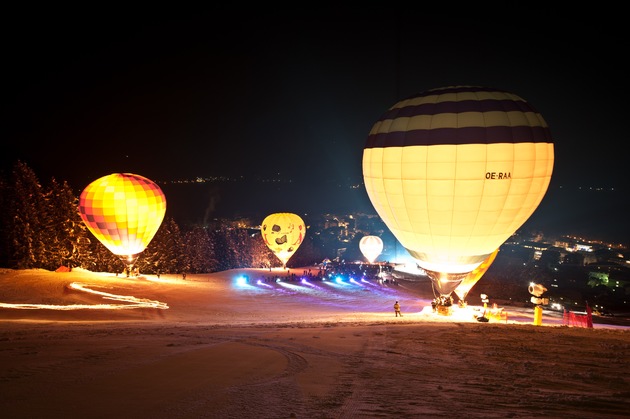 An zwei Abenden wird die "Nacht der Ballone" jeweils ab 20.00 Uhr nach Einbruch der Dunkelheit farbenprächtig und versetzt Gäste ins Staunen. Hier können am 09. Februar in Kaprun beim Lechnerberg sowie am 11. Februar in Zell am See bei der Talstation cityXpress Besucher und Einheimische einen bunten Nachthimmel voller Heißluftballone bewundern. Bei freiem Eintritt erleben die Zuseher an beiden Abenden ein unterhaltsames Rahmenprogramm.