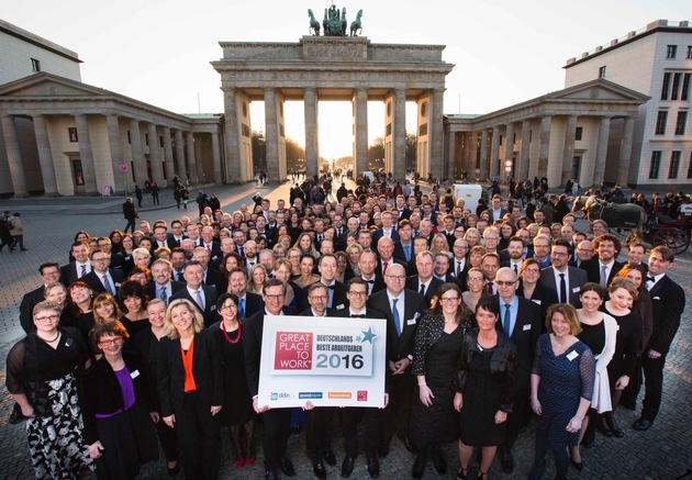 Die Sieger des Wettbewerbs «Deutschlands Beste Arbeitgeber 2016» stehen fest. 100 Unternehmen aus dem gesamten Bundesgebiet nahmen gestern Abend in Berlin die Auszeichnungen für besondere Qualität und Attraktivität als Arbeitgeber entgegen, die seit 2003 jährlich vom Great Place to Work Institut verliehen werden. Insgesamt hatten sich 613 Unternehmen aller Größen, Branchen und Regionen an dem aktuellen Benchmarking zur Arbeitsplatzkultur beteiligt.