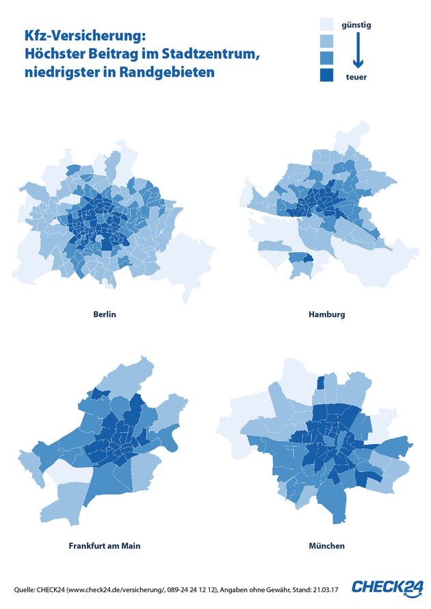 HamburgJe nach Postleitzahl variiert der Preis für eine Kfz-Versicherung innerhalb derselben Großstadt um bis zu 13 Prozent - bei sonst identischen Tarifmerkmalen. In der Spitze verteuert das beitragsrelevante Merkmal Postleitzahl die Kfz-Versicherung um 134 Euro jährlich.*