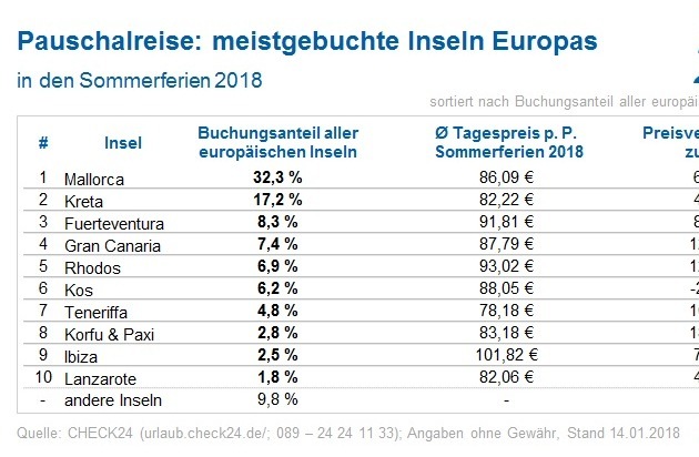 - Pauschalreise: Inselurlauber buchen am liebsten Mallorca, Kreta