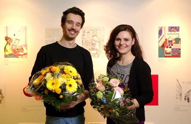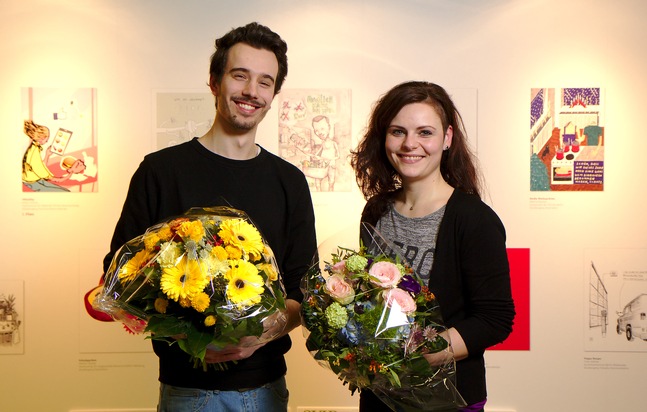 Ausgeschrieben war der bundesweite Wettbewerb von Juni bis September 2015 für Studenten der Studiengänge Bildende Künste, Grafikdesign, Kommunikationsdesign, Illustration und Visuelle Kommunikation. Gewonnen hat der 25-jährige Student Anton Ohlow von der Hochschule für Bildende Künste Braunschweig mit seinem Werk "#Healthy". Die Karikatur zeigt eine Person mit einem Hamburger in einem Schnellrestaurant, die gerade am Smartphone gesunde Lebensmittel wie Obst mit "gefällt mir" anklickt. Dadurch wird das eigene schlechte Gewissen beruhigt, weil man gesunde Ernährung eigentlich gut findet, aber selbst nicht konsumiert.