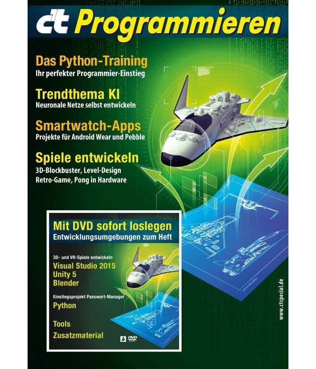 Mit dem c't-Sonderheft Programmieren lernen ambitionierte Spiele-Entwickler Unity 5 kennen und erstellen Spielversionen für Mobilgeräte und VR-Brillen. Am Beispiel des Spielklassikers Pong wird gezeigt, wie man selbst Chips designen kann, und mit Hilfe des Breakout-Klons Impac't wird der Einstieg in Level- und Sounddesign erklärt.