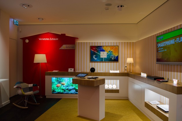 Das besondere Highlight in München ist das SmartHome-Wohnzimmer, das Vodafone mit Kooperationspartner RWE erstmals in einen Shop integriert hat. Es zeigt ein Zuhause, das sich via Tablet oder Smartphone fernsteuern lässt. Die funkbasierte Haussteuerung von RWE vernetzt Haustechnik, Licht und Geräte drahtlos miteinander und lässt sich über ein bedienerfreundliches Menü ohne besondere technische Kenntnisse einrichten. "Im Vodafone-Shop kann jeder vorbeischauen und selbst erleben, wie SmartHome schon heute den Alltag erleichtert und sicherer macht", sagt Lothar Stanka, Vertriebsleiter bei RWE Effizienz über das neue Präsentationskonzept im Flagship-Store.