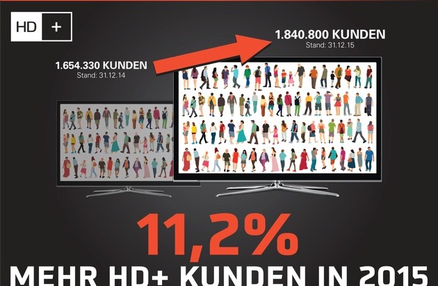 HD+ baut seinen Kundenstamm abermals deutlich aus: Zum 31.12.2015 zählte das Unternehmen 1.840.800 zahlende Kunden. Das sind elf Prozent mehr als im Vorjahreszeitraum (31.12.2014: 1.654.330). Zusätzlich befinden sich aktuell 1,1 Millionen Satelliten-TV-Haushalte in der kostenlosen Testphase. HD+ bietet Zuschauern, die ihr Programm über Satellit empfangen, die Auswahl aus mehr als 50 HD-Sendern sowie Zugriff auf den UHD-Demo-Kanal UHD1 by Astra / HD+.