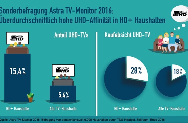 TV-Monitor-Sonderbefragung zu Ultra HD: Überdurchschnittlich hohe UHD-Affinität in HD+ Haushalten