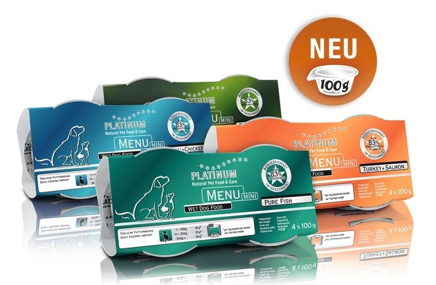 Der Hersteller der Nahrung, die PLATINUM GmbH & Co. KG aus Bingen am Rhein, erfüllt mit diesem Schritt einen häufig geäußerten Kundenwunsch: "Vor allem die Besitzer von Hunden kleinerer Rassen haben uns immer wieder gebeten, auch eine kleinere Verpackungseinheit von 'PLATINUM MENU' in unser Sortiment aufzunehmen", erläutert PLATINUM-Geschäftsführerin Doreen Jähne die Erweiterung des Produktangebots. Von den Kunden sei dieser Wunsch mit der hohen Ergiebigkeit von "PLATINUM MENU" begründet worden: "Da unsere Nassnahrung aus mindestens 83 Prozent frischem Fleisch bzw. frischem Fisch besteht und darüber hinaus ohne jeglichen Zusatz von Wasser im eigenen Saft schonend gegart wird, ist 'PLATINUM MENU' besonders reichhaltig an wertvollen Nährstoffen. Deshalb", so Doreen Jähne, "müssen unsere Kunden eine wesentlich geringere Nahrungsmenge verfüttern, als dies bei herkömmlichem Nassfutter der Fall ist." Aus diesem Grund sei die neue "Mini"-Verpackungsgröße gerade für die Halter von Hunden bis zu einem Gewicht von etwa sieben Kilogramm ideal geeignet, um dem Tier jederzeit eine stets frische PLATINUM-Mahlzeit servieren zu können.