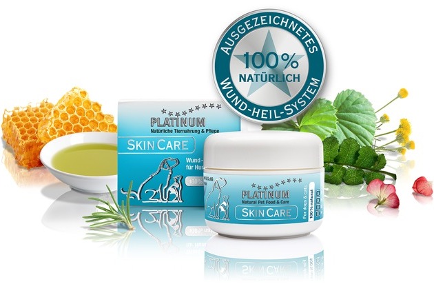Mit PLATINUM SKIN CARE gibt es für Hunde- und Katzenbesitzer ab sofort eine rein natürliche und zugleich wirkungsvolle Alternative für die Wundversorgung ihres Vierbeiners. Der neue Wund- und Heilbalsam aus dem Hause des für seine hochwertigen Tiernahrungs- und -pflegeprodukte bekannten Herstellers PLATINUM enthält ausschließlich natürliche Inhaltsstoffe: kaltgepresstes Olivenöl, natürliches Bienenwachs sowie Kräuterextrakte. Das Besondere dabei ist, dass das verwendete Olivenöl aus Oliven von mindestens 300 Jahre alten Bäumen gewonnen wird. Das hohe Lebensalter dieser Bäume begründet sich in ihrem hohen Anteil an Oleuropein und Hydroxytyrosol - zwei der effektivsten natürlichen Antioxidantien, die damit auch in SKIN CARE ihre Wirkung entfalten. Im Gegensatz zu vielen Konkurrenzprodukten wird der neue Balsam zudem ohne künstliche Inhaltsstoffe hergestellt.