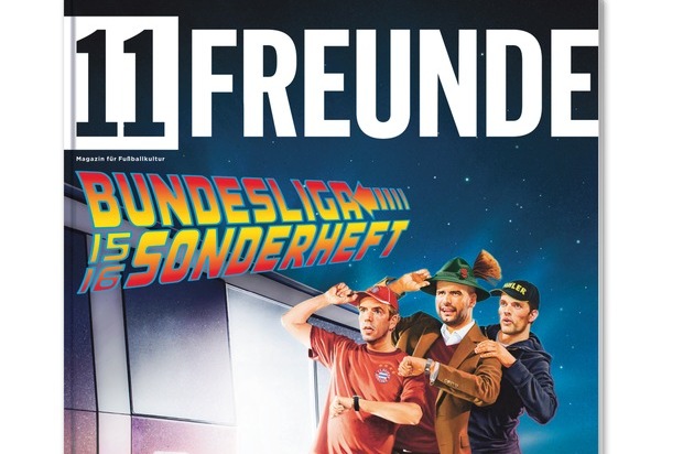 Ab heute ist die 165. Ausgabe der 11FREUNDE als Bundesliga-Schwerpunktheft im Handel erhältlich. Das Heft umfasst 164 Seiten und erscheint inklusive dem ausführlichen Pocketplaner "Alle Teams, Spieler und Termine" sowie einem doppelseitigen Spielplanposter für die 1. und 2. Bundesliga. Die Tradition der kreativen Covers geht auch mit dieser Ausgabe weiter: In diesem Jahr ziert eine Illustration in Anlehnung an den Film "Zurück in die Zukunft" das Cover der Ausgabe.