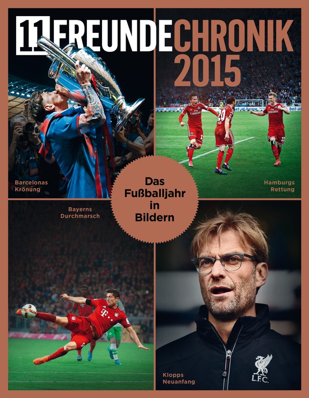 Zum zweiten Mal in Folge präsentiert 11FREUNDE ein großes Jahressonderheft. Ab dem 1. Dezember 2015 ist die "11FREUNDE Chronik 2015 - ein Fußballjahr in Bildern" im Handel erhältlich. In Großformat und Hochglanz zeigt das Magazin für Fußballkultur auf 132 Seiten die besten, spannendsten und aufregendsten Geschichten und Fotos aus dem Fußballjahr 2015.