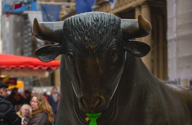 Bild anbei: Bulle mit Schlips vor der Frankfurter Börse. Guerilla-Aktion zur Bewerbung der FR Serie "Arbeit. Unsere Religion." Fotograf: Andreas Arnold. Weitere Bilder zur Ansicht in der FR Bildergalerie unter: http://ots.de/0Uoo7