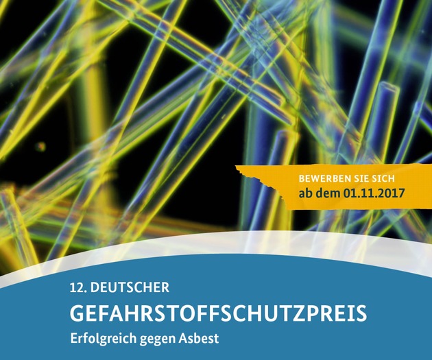 Unter dem Motto "Erfolgreich gegen Asbest" sucht der 12. Deutsche Gefahrstoffschutzpreis nach innovativen Konzepten und praktischen Lösungen zum Schutz von Beschäftigten. Trotz seines Verbotes im Jahre 1993 gefährdet das einstige "Wundermineral" Asbest noch heute die Beschäftigten. Insbesondere bei Instandhaltungsarbeiten an und in Gebäuden, die vor 1993 erbaut wurden, können die gefährlichen Fasern freigesetzt werden und Beschäftigte aber auch Nutzer gefährden. Die Bewerbungsfrist für den mit insgesamt 10.000 Euro dotierten Gefahrstoffschutzpreis läuft bis zum 15. April 2018.