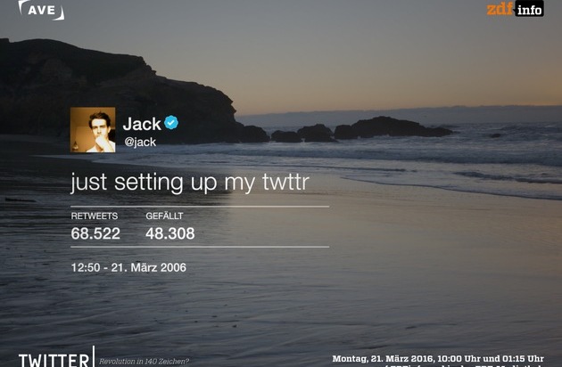 Die Dokumentation "Twitter - Revolution in 140 Zeichen?" sendet ZDFinfo erneut am Freitag, 25. März 2016, 16.45 Uhr, und am Samstag, 26. März 2016, 7.00 Uhr.