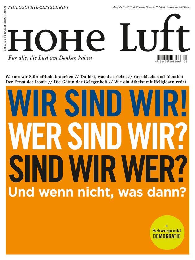 HOHE LUFT betrachtet aktuelle und bewegende Themen aus Gesellschaft & Kultur, Politik & Wirtschaft aus einem philosophischen Blickwinkel und eröffnet dem Leser überraschende Perspektiven auf Grundfragen des Lebens.