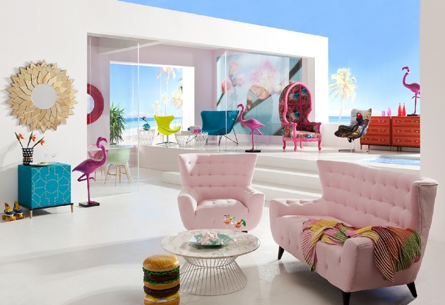 Jürgen Reiter: "Die Mutigen vertrauen auf Spontanität und Bauchgefühl! Trendsettern lege ich drei Wohnthemen ans Herz. Das wandlungsfähige Thema "Picassimo" basiert auf Schwarz-Weiß-Kontrasten, das macht Einrichten total unkompliziert und sieht schick aus. Ganz das Gegenteil: "Miami Lounge", - mit tropischen Prints und knalligen Farben, genau richtig für lebenslustige Genießer. Für Einsteiger haben wir "Campus" entdeckt. Hier findet sich Funktion durch Improvisation, entwickeln sich Wohn-Freiräume für eine aufbrechende Generation auf der Suche nach dem Selbst. Regale, Setzkasten, Tisch und Stuhl treffen wie zufällig auf Skateboard und Leuchtschrift.