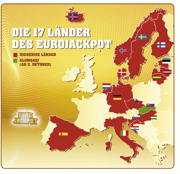 Mit der Slowakei haben zusätzliche 5,4 Mio. Menschen die Möglichkeit bei der Lotterie Eurojackpot mitzuspielen. Im Einzugsgebiet der Lotterie haben damit rund 269 Mio. Personen die Chance Millionär zu werden.