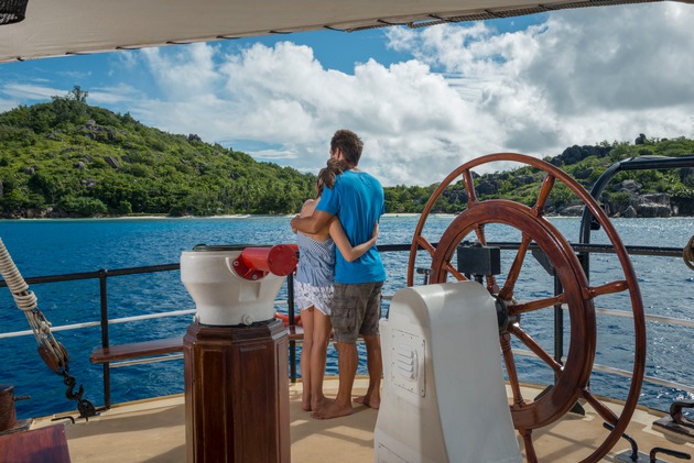 Dabei wählt das Hochzeitspaar aus den verschiedenen Seychellen-Inseln der Route die ganz persönliche Hochzeitskulisse aus: Ob vor St. Pierre Island bei Curieuse, vor La Digue, Praslin oder Mahé - das Schiff ankert dann auf Wunsch für die Zeremonie vor der Lieblingsinsel oder in der Traumbucht. So lässt sich die Hochzeit beispielsweise direkt im Anschluss bei einem Barbecue auf der Schildkröteninsel Curieuse feiern. Auf La Digue kann sich das Paar zudem für weitere Hochzeitsbilder am weltberühmten Bacardi-Strand fotografieren lassen oder im UNESCO-Welterbe Valleé de Mai auf Praslin zusammen mit der Riesen-Kokosnuss Coco de Mer posieren.