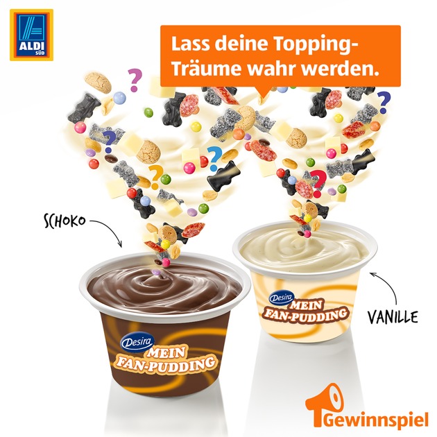 Ob Schokolinsen, Keksgebäck oder Marshmallows - der DESIRA Sahnepudding mit Süßigkeiten erfreut sich bei ALDI SÜD Kunden großer Beliebtheit. Doch Geschmäcker sind ja bekanntlich unterschiedlich. Deshalb ruft die Unternehmensgruppe unter dem Motto "Mein Fan-Pudding" bis zum 5. April auf der Facebook Fanseite ALDI SÜD dazu auf, eine eigene Pudding-Topping-Kreation zu entwerfen. Die Ideen können einfach über die Kommentarfunktion unter dem Gewinnspiel-Post eingereicht werden. Als Hauptgewinn winkt ein flotter Elektroroller. Die Kreation mit den meisten Stimmen wird ab Anfang September 2017 unter dem Vornamen ihres Schöpfers in allen ALDI SÜD Filialen erhältlich sein.
