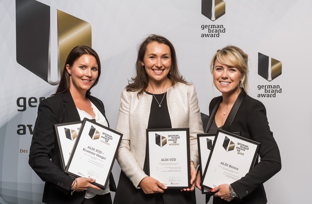 Einen German Brand Award in Gold erhielt der Discounter für die Marke ALDI SÜD in der Kategorie "Industry Excellence in Branding - Trade, Retail & e-Commerce". "Die Marke ALDI SÜD hat an ihrem Auftritt gefeilt und sich mit der Leitidee 'Einfach an deiner Seite' als Versorger für alle strategisch perfekt positioniert. Eine bis ins Detail professionell durchdeklinierte Markenarbeit, mit der sich das Unternehmen nicht nur zeitgemäß, freundlich und modern präsentiert, sondern der Marke auch genügend Raum für einen flexibleren Einsatz in der analogen und digitalen Kommunikation lässt", heißt es dazu in der Jurybegründung.