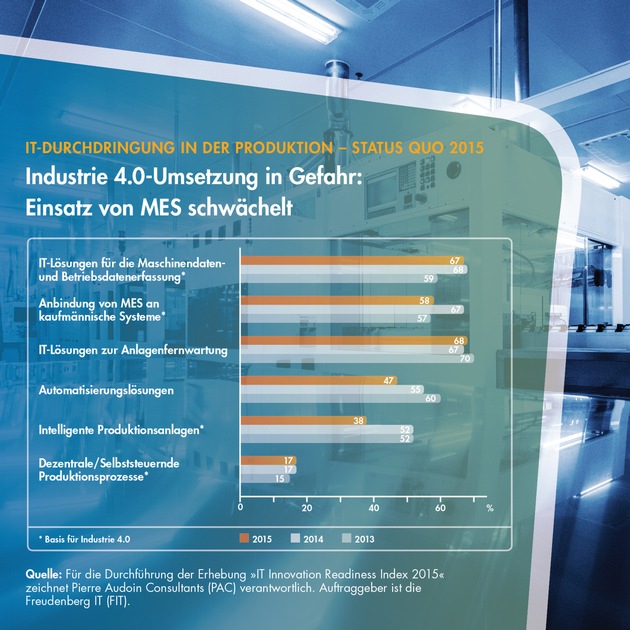 Die Studienergebnisse des "IT Innovation Readiness Index 2015" können unter http://ots.de/jZxm8 abgerufen werden, die Ergebnisse der Vorjahre unter http://www.freudenberg-it.com/de/it-innovation-readiness-index-2014/ (2014) und unter http://ots.de/fVkG0 (2013).