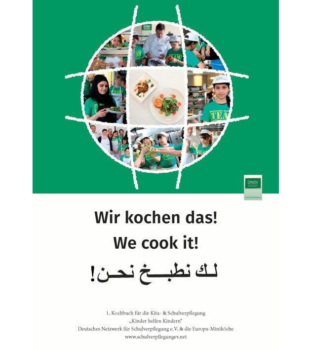 Das Deutsche Netzwerk Schulverpflegung e. V. (DNSV) hat mit den Europa Miniköchen ein Kochbuch mit von Schülern gekochten und erprobten Rezepten für die Gemeinschaftsverpflegung zusammengestellt, denn Essen ist Heimat und das auch in der Fremde. Für die erste Ausgabe kochten die Berliner Miniköche mit Jugendlichen aus einer Willkommensklasse von der Sophie-Brahe-Schule in Berlin, gemeinsam mit den DNSV-Botschaftern Steffen Schwarz, Leiter der Metro Academy Berlin, und Ulrike Laun, von der Landlust Körzin. "Integration ist vor allem eine Bauchsache und Kochen verbindet - über die Küche hinaus. Das gemeinsame Koche und Essen bringt die Kinder zusammen, es entsteht Verständnis für einander, eine Plattform, auf der sich interkulturelle Freundschaftsnetzwerke bilden können. Wir wollen damit helfen, die an uns gerichteten Anfragen von schulischen Einrichtungen, Caterern und Mensavereinen im Rahmen des Themas Flucht und Asyl, nach Kochrezepten für die Kita- & Schulverpflegung zu beantworten", so der Vorsitzende des DNSV zum Anliegen des Buches. Ein Kochbuch für alle die, die eine gesunde und abwechslungsreiche Schulverpflegung für alle Schüler realisieren wollen.