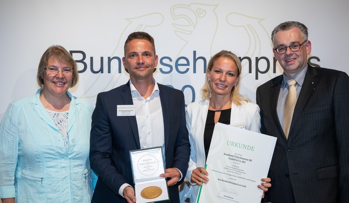 Kaufland Fleischwaren hat in Berlin eine besondere Würdigung erfahren: Das Bundesministerium für Ernährung und Landwirtschaft (BMEL) hat dem Unternehmen den Bundesehrenpreis in Gold verliehen. Dr. Katharina Böttcher, Ministerialdirektorin bei der Bundesministerin für Ernährung und Landwirtschaft, übergab gemeinsam mit Dr. Diedrich Harms, Vizepräsident der DLG (Deutsche Landwirtschafts-Gesellschaft), die höchste Auszeichnung der Ernährungswirtschaft. "Zum 15. Mal erhalten die Baden-Württemberger den Bundesehrenpreis. Das ist eine außerordentliche Leistung, die die besondere Stellung von Kaufland Fleischwaren als Qualitäts- und Genussführer unterstreicht", betonte Dr. Harms bei der feierlichen Preisverleihung im Meistersaal.