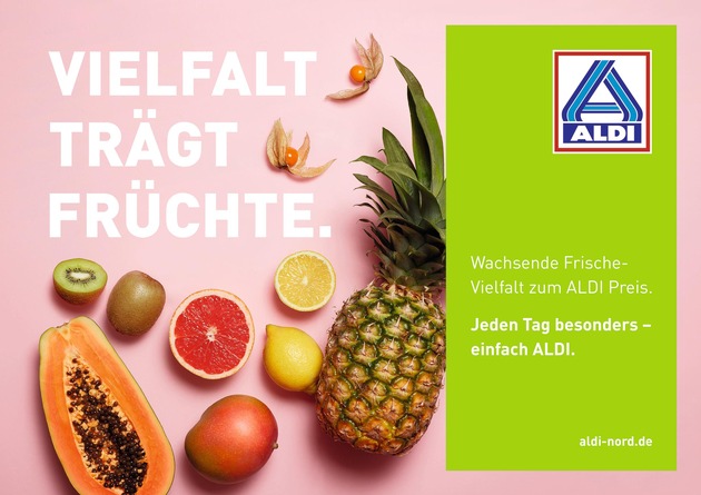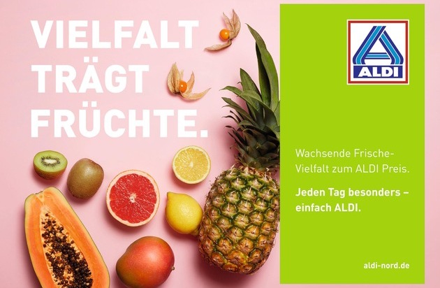 Der neue TV-Spot feiert am Sonntag, den 17. September ab 20 Uhr auf allen großen deutschen TV-Sendern Premiere. Die Kunden werden zusätzlich an 365 Tagen im Jahr über die aktuellen Angebote informiert. Dies geschieht unter anderem durch wechselnde Radiospots. Im ALDI Nord Gebiet werden zusätzlich über 10.000 Plakate zu sehen sein. Kernthema ist dabei die hohe Frischekompetenz des Discounters. Die wortspielerischen Motive, bei denen beispielsweise aus Kartoffeln "heimische Bodenschätze" werden, finden sich zudem auf Print- und Online-Anzeigen wieder. Auch das wöchentlich erscheinende "ALDI aktuell" Magazin bekommt einen neuen, frischen Anstrich. Neu ist auch der Samstag als zusätzlicher Aktionstag, an dem sich Kunden künftig über weitere attraktive Non-Food Artikel zum günstigen ALDI Preis freuen dürfen.