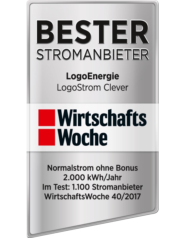 LogoEnergie steht nicht nur für fairen Service und einfache Tarife, sondern gehört auch zu den günstigsten Stromanbietern in Deutschland. Im Stromanbieter-Vergleich der WirtschaftsWoche (Heft 40/2017) liegt LogoEnergie auf Platz 1 im Bereich "faire Tarife ohne Bonus" bei einem Verbrauch von 2000 kWh/Jahr.