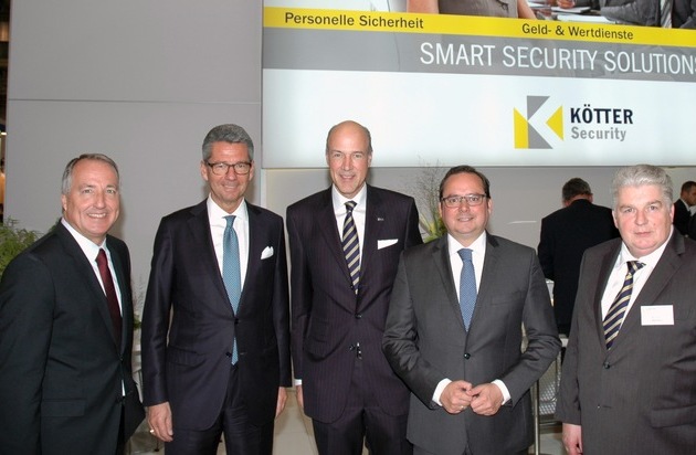 Hohen Besuch gab es zum Auftakt der weltgrößten Sicherheitsmesse "security 2016", die heute in der Messe Essen gestartet ist, bei KÖTTER Security: Ulrich Grillo, Präsident des Bundesverbandes der Deutschen Industrie (BDI) und Thomas Kufen, Oberbürgermeister der Stadt Essen, informierten sich im Rahmen ihres Messerundgangs u. a. über Dienstleistungs- und Produktneuheiten des Familienunternehmens. Sie wurden am Stand von KÖTTER Security durch Friedrich P. Kötter, u. a. Verwaltungsrat der Westdeutscher Wach- und Schutzdienst Fritz Kötter SE & Co. KG und Vize-Präsident des Bundesverbandes der Sicherheitswirtschaft (BDSW), begrüßt. Der zweitgrößte Sicherheitsdienstleister Deutschlands, der seit dem 1974 erfolgten Start der "security" kontinuierlich auf dem wichtigsten Branchentreff vertreten ist, stellt bis kommenden Freitag, 30. September, in Halle 2.0, Stand 2A40 z. B. folgende Neuheiten und Angebote vor: