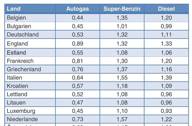 Äußerst beliebt sind bei den Deutschen nach wie vor auch inländische Reiseziele an Nord- und Ostsee sowie in Bayern. Hier profitieren Autogas-Fahrer derzeit von einem Preis von rund 53 Cent pro Liter. In Italien tanken Urlauber für rund 64 Cent Autogas - für herkömmliche Kraftstoffe müssten sie vor Ort mehr als doppelt so viel ausgeben. Und auch in häufig angesteuerten Ländern wie Österreich (69 Cent), den Niederlanden (73 Cent) und Frankreich (81 Cent) fallen die Autogas-Preise jeweils deutlich niedriger aus als die von Benzin oder Diesel. In Belgien zahlen Autogas-Fahrer mit 44 Cent im Vergleich sogar nur rund ein Drittel des Preises anderer Kraftstoffe.