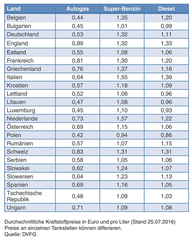 Wer seine Urlaubsreise mit einem Autogas-Fahrzeug antritt, kann sich auch in diesem Jahr wieder über günstige Kraftstoffpreise freuen. In vielen beliebten Urlaubsländern tanken Autogas-Fahrer für die Hälfte des Preises herkömmlicher Kraftstoffe, so das Ergebnis einer aktuellen Recherche des Deutschen Verbandes Flüssiggas e. V. (DVFG).