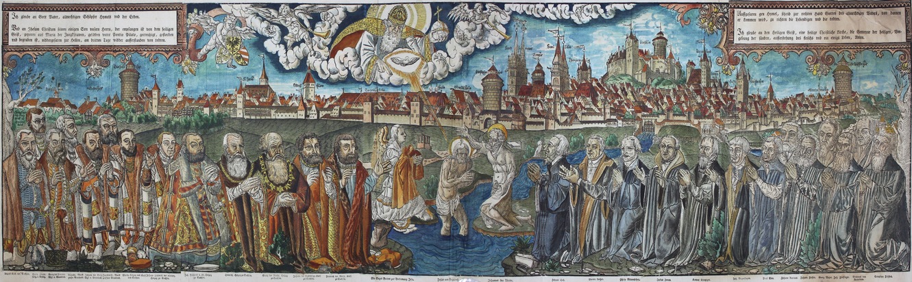 Martin Luthers Wittenberger Thesenanschlag von 1517 wirft seine Schatten auch nach Nürnberg, denn kaum zwei Monate später erscheinen sie - ins Deutsche übersetzt - als Druckschrift in Nürnberg. Mit dem "Nürnberger Religionsgespräch" von 1525 wird hier die Reformation früh und relativ "geräuschlos" eingeführt - damit war eines der damals wichtigsten Handels- und Kulturzentren Europas evangelisch geworden. Nürnberg galt damals als hochbedeutender Druck- und Verlagsort mit einem überdurchschnittlichen Bildungsniveau: niemand anderer als Luther selbst bezeichnete die Stadt 1530 als das "Auge und Ohr Deutschlands". Anhand von etwa 100 Exponaten aus den Bereichen Druckgraphik, Buchdruck, Malerei und Plastik veranschaulicht die Ausstellung dieses wichtige Kapitel der Reformationsgeschichte in seinen bedeutsamsten Aspekten.