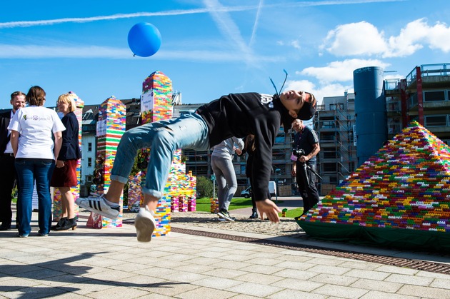 Sportjugend NRW mit über 50.000 unterschriebenen Spielbausteinen vor dem Landtag