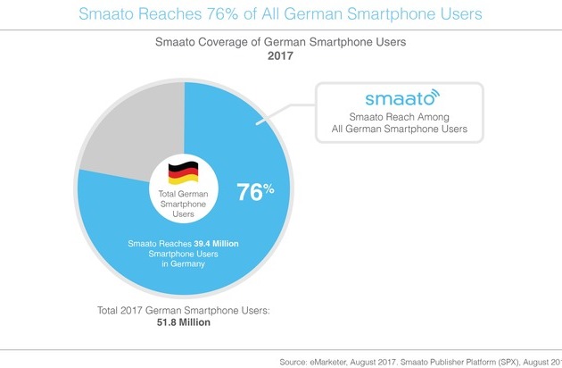 Smaato, weltweit führende Real-Time Advertising Platform für mobile Publisher und App-Entwickler, wächst auch in Deutschland rasant. Der Spezialist für die Vermittlung mobiler Smartphone-Werbung erreicht mit rund 39 Millionen Deutschen bereits 76% und damit einen Großteil der insgesamt 51,8 Millionen Smartphone User.
