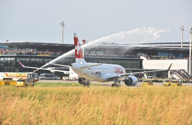 Am 17. Juni ist das erste Mal das neue SWISS Kurz- und Mittelstreckenflugzeug vom Typ Bombardier CSeries in Zürich gelandet. Das von Grund auf neu entwickelte Flugzeug landete unter den Augen zahlreicher Fans pünktlich um 19:00 Uhr nach einem tiefen Überflug über die Piste 16 am SWISS Hub und wurde mit Wasserfontänen sowie einer speziellen Begrüßungszeremonie durch eine SWISS Delegation in Empfang genommen.
