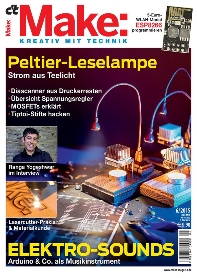 Die aktuelle Ausgabe der Make bietet nicht nur Tipps für Start-ups, sondern auch viele spannende Selbstbau-Projekte - zum Beispiel wie man Strom aus einem Teelicht erzeugt oder die bei den Kindern beliebten Tiptoi-Stifte selbst programmieren kann. Darüber hinaus berichtet der Wissenschaftsjournalist Ranga Yogeshwar im Make-Interview über seinen Einstieg ins Programmieren und die Technik-Kultur in Deutschland.