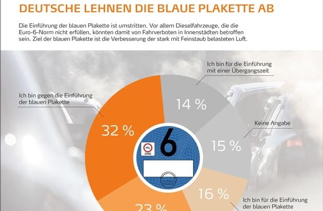 Vorausgesetzt, Anwohner und ansässige Betriebe profitieren von Sonderregelungen, stimmen 23 Prozent der Befragten für die Einführung der neuen Plakette. Für die sofortige Umsetzung der Pläne des Umweltministeriums ohne Ausnahmeregelung votieren 16 Prozent für die Einführung ohne Ausnahmeregelungen, mit einer Übergangszeit stimmen 14 Prozent der Deutschen.