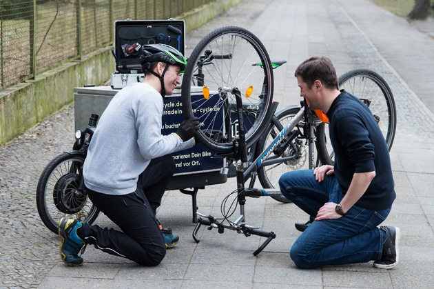 3. Kleinere Defekte werden vor Ort repariert. Mobile Fahrradwerkstätten, die insbesondere in Städten mit dem Lastenfahrrad unterwegs sind, haben eine Mini-Werkstatt mit dem passenden Equipment für die Reparatur dabei. Zudem bringen die Mechaniker das nötige Zubehör mit, etwa wenn das Fahrrad einen neuen Schlauch braucht. Ist das Rad schwerer beschädigt, wird es in die nächste Werkstatt, zum Ziel- oder Wohnort transportiert.