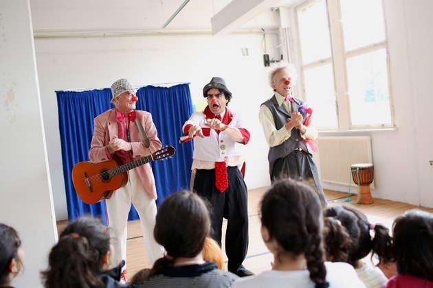 Mit buntem Kostüm, roter Nase, Jonglier-Kunst und lauten Trommeln - so begeisterte der Opernsänger, der sonst eher für klassische Töne bekannt ist. Die Rolle des Clowns ist Villazón nicht fremd. Bereits als junger Mann ist er als solcher aufgetreten und seither der Clownfigur treu geblieben. "Ich liebe es als Clown aufzutreten. Es erfüllt mich mit großer Freude. Denn die Menschen haben nach einem Clownbesuch - egal ob im Krankenhaus oder auch hier im Flüchtlingsheim - einen anderen Blick auf die Welt. Mit diesem Moment von Licht und Farbe, den die Clowns bringen, geht es den Menschen besser und es fällt ihnen ein bisschen leichter, Schwierigkeiten zu bewältigen", so Villazón, der sich als offizieller Botschafter für ROTE NASEN engagiert.