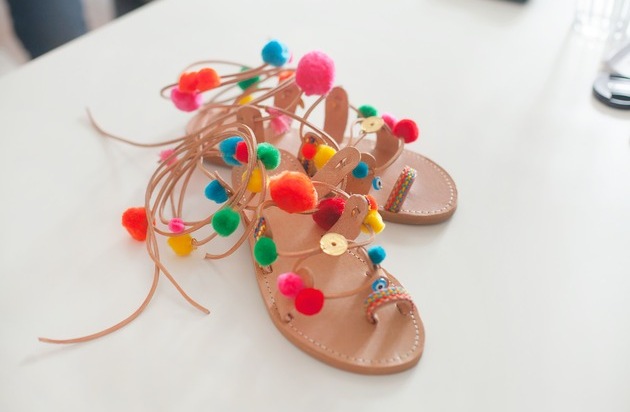 Neben den üblichen Sommer-Lieblingen wie Blumenprints oder luftigen Stoffen bahnen sich gerade Ethno-Produke ihren Weg in den Trend-Himmel: Bunte Bommel, pastellfarbene Quasten und farbenprächtige Stickereien zieren Kleidung, Accessoires und Möbel. Anne Liebknecht vom Berliner Blog Modeschopf hat sich für Etsy ins Zeug gelegt und zeigt in einfachen Schritten, wie man das absolute Sommer-Must-Have für Mode-Liebhaber ohne großen Geldbeutel selbst gestalten kann: Die Pompon-Sandale im Ethno-Look.