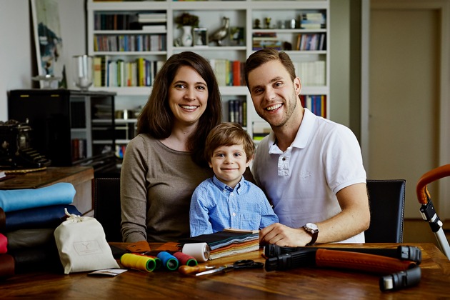 Alles fing mit der schwierigen Wahl des eigenen Kinderwagens an. Kein Modell stellte die jungen Eltern zufrieden, weswegen Familie Holland kurzerhand bei einem Sattler Ledergriffe für ihr rollendes Gefährt anfertigen ließ. Schnell war klar, dass ihr Kauf auch im Bekanntenkreis gut ankam und so entstand die persönliche Geschäftsidee: Kinderwagengriffe aus Echtleder zum Schutz der Schaumstoffgriffe und zur optischen Veredelung des Wagens. Aus der Idee wurde Ernst und mittlerweile fertigen die beiden Kreativen unter dem Namen "Lederglück" mit großem Erfolg nicht nur Echtledergriffe, sondern auch Gurtpolster, Schrittgurte, Taschenhaken oder Schlüsselanhänger Die Kundenbewertungen sind durchweg positiv und gerade dieses Feedback nutzt Familie Holland zur Erweiterung des Repertoires - dank der Zusammenarbeit mit einer Münchner Stickerei besteht nun sogar die Option, sich Produkte personalisieren zu lassen, z.B. mit dem Namen des Kindes.