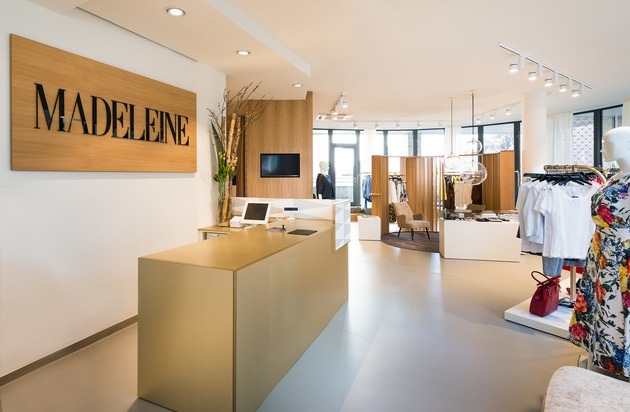 Ein neues Store-Konzept wurde im Zuge der Standortverlagerung entwickelt und realisiert. Bei der Gestaltung des Stores wurde darauf geachtet, dass das Dekor widerspiegelt, wofür MADELEINE steht: erstklassige Qualität, hochwertige Stoffe und zeitgemäße Eleganz. Das Interior Design zeichnet sich vor allem durch Klarheit und die Verwendung von hochwertigen Materialien aus. Der gezielte Einsatz grafischer Elemente setzt weitere optische Akzente, eine Lounge und moderne Deckenlampen runden das niveauvolle Ambiente ab.