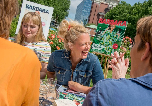 "Raus ins Grüne" - so titelt die aktuelle Ausgabe der Zeitschrift BARBARA, und die Redaktion geht gleich mit gutem Beispiel voran: Die heutige Redaktionskonferenz wurde kurzerhand ins Freie verlegt. Bei herrlichstem Hamburger Sommerwetter, auf der Wiese zwischen Hamburger Michel und dem Gruner + Jahr-Verlagshaus fanden sich Barbara Schöneberger, Editor-at-Large von BARBARA, und ihr Redaktionsteam ein, um bei guter Laune die kommenden Ausgaben des Magazins zu planen.