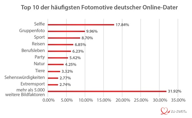 Das unabhängige Online-Dating-Vergleichsportal ZU-ZWEIT.de veröffentlicht die weltweit erste Studie, in der 22 Millionen Online-Dating-Profilbilder einzeln mit einem Deep-Learning-Algorithmus auf 6.000 Bildfaktoren untersucht wurden. Erstmalig werden Daten zu Fotogewohnheiten deutscher und internationaler Singles in einer Studie dargestellt: Von Körperbehaarung über Lieblingslocations bis hin zu Superheldenkostümen, Nilpferden, Gurken und Papstfotos: So zeigen sich deutsche und internationale Singles online.