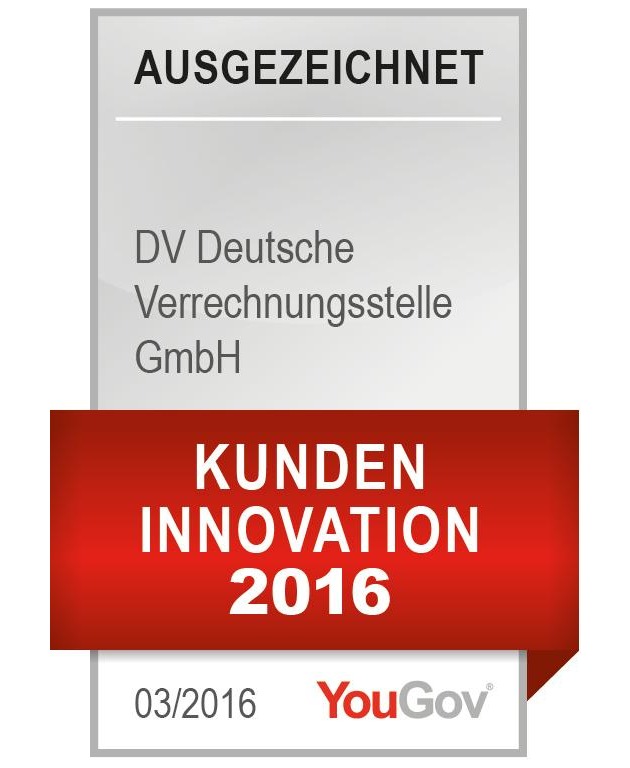 Die Deutsche Verrechnungsstelle hat für ihr innovatives und am Markt bisher einmaliges Angebot von dem internationalen Marktforschungs- und Beratungsinstitut YouGov das begehrte Siegel "Kunden-Innovation 2016" erhalten. Dass das im September 2015 von Andreas Pohl und Reinfried Pohl gegründete Unternehmen bereits nach so kurzer Zeit erfolgreich ist, bestätigt die Innovationskraft dieser Dienstleistung. Dabei punktet die Deutsche Verrechnungsstelle mit ihrem auf den Bedarf von Handwerkern und mittelständischen Unternehmern zugeschnittenen Leistungspaket.